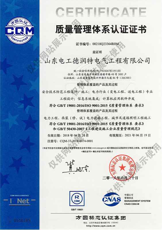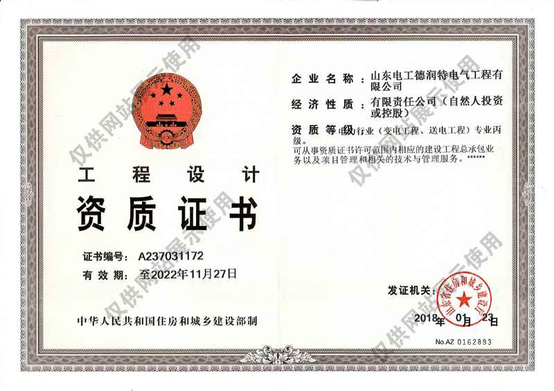 公司成立于2008年7月,坐落在海滨城市青岛,注册资本1亿元, 专业从事电力设计和电力工程总承包企业。公司现具有电力工程施工总承包二级,承装(修)二级,承试三级,电力行业(变电工程、送电工程)专业设计丙级,城市及道路照明工程专业承包三级、信息技术服务运行维护三级、安全技术防范工程设计施工一级、CMMI三级资质、安全生产许可证等资质。公司现已发展成为集电力设计、电力工程施工、电力设备生产制造、提供电力增值服务、智能化安防.系统集成工程于一体的综合性电力工程公司,能够为客户提供集成式、全产业链一站式综合服务。
